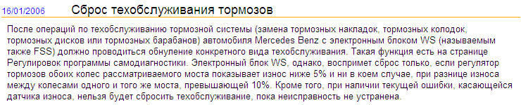 Если в блоке WS отключено будет отслеживание износа накладок, то и просить ТО он не будет. Вероятно может быть заблокирована функция сброса ТО через панель?... Не могу точно про Actros MP1 сказать, но на Actros MP2 после замены колодок через некоторое время WS сам обнуляет износ по колодкам.